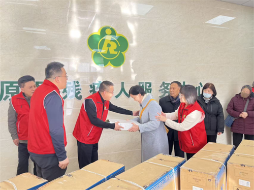 图为清原县政府党组成员于福恩代表助残志愿服务队向残疾人发放辅助器具
